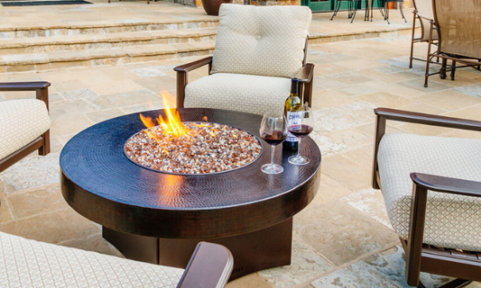 Oriflamme Gas Fire Pit Table Hammered Copper Somber